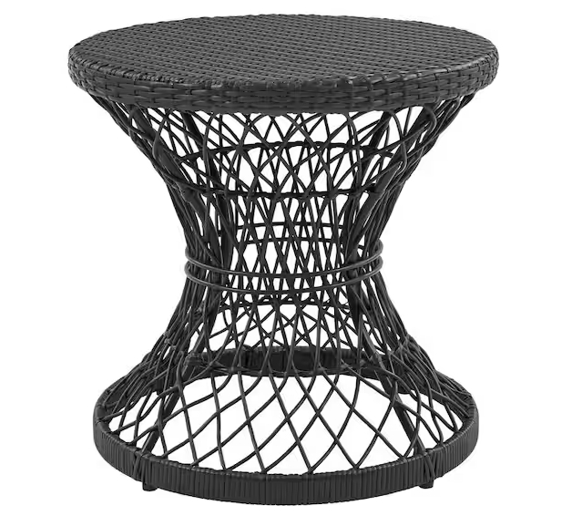 20.10 in. Woven Black Round Metal Wicker Twist Outdoor Side Table